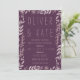 Lila Hochzeitseinladung mit schönen rustikalen Blume und Blätter. Ideal für eine lila oder rustikale Hochzeit. Ersetzen Sie den Platzhaltertext in der Vorlage, um Ihre Informationen hinzuzufügen. Für weitere Optionen, wie zum Beispiel den Schriftart und seine Größe ändern, klicken Sie auf die Schaltfläche "Anpassen".