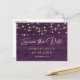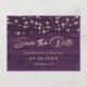 Lila rustikale Holzreihenleuchten Save the Date Ankündigungspostkarte