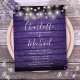 Eine stilvolle rustikale Einladung zur Hochzeit mit hübschen Streichellichtern, prächtigen Stilbezeichnungen und schicken Typografien auf rustikalem lila Holzboden. Entwickelt von Thisisnotme©
