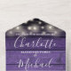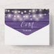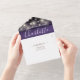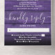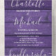 Alles in einer Hochzeitseinladung mit hübschen Saitenlichtern, prächtigen Stilbezeichnungen und schicken Typografien auf rustikalem lila Holzboden. Die Einladung enthält eine perforierte RSVP-Karte mit Wahlmöglichkeiten. Entwickelt von Thisisnotme©