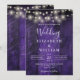 Diese lila rustikale Stallenholz-Saitenleuchten Hochzeitseinladung kann mit Ihren Informationen in der modernen Typografie personalisiert werden. Entwickelt von Thisisnotme©