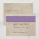 Eleganter und schicker Rustikaler Damast Save the Date Postcard mit einem Vintag strukturierten Papierhintergrund und einem geblüht Damast-Musterrahmen lila. Einfach anpassen, einfach Ihre Hochzeitsdetails hinzufügen. Klicken Sie auf "Anpassen", um weitere Personalisierungsoptionen zu erhalten.
