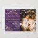 Feiern Sie Ihre Liebe mit unserer bezaubernden rustikalen Holzhütte lila Hochzeit. Dieses elegante Design besticht durch delikate Lichter mit Saitenreihen und vergoldete Blumenspitzen. Mit einem anpassbaren Raum für Ihr Lieblings-Foto und einem QR-Code für einfache UAWG verbindet diese Einladung modernen Komfort mit zeitlosem Charme. Lade deine Gäste ein, sich auf dieser unvergesslichen Reise zu begleiten, während du dein neues Kapitel zusammen anfange.