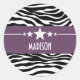 Die trendigen und modernen Sassy Star Zebra Sticker mit einem schicken schwarz-weißen Zebrahintergrund und einem kühnen lila Rahmen mit einem lustigen Sternmotiv. Dieses mädchenhafte Design kann mit dem personalisierten Text Ihrer Wahl angepasst werden. Klicken Sie auf "Anpassen", um weitere Personalisierungsoptionen zu erhalten.