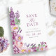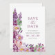 Lila Blüte Save the Date. Mit eleganten Kalligrafien und exquisiten handbemalten Aquarellbildern in sanften Lavendeln, Rosa, Bordeaux/Pflaume und lebhaftem lila, mit zarten Wildblumen, Rose und eleganter Vegetation geschmückt. Perfekt für Frühling, Sommer und Hochzeiten im Herbst, jeder Gegenstand dieser Kollektion flüstert Liebe, Zauber und zeitlose Romantik und schafft die Bühne für Ihre unvergessliche Feier. Lass die Schönheit der Natur und den Charme der Vintagen Eleganz und schmücken Ihren besonderen Tag mit unserer faszinierenden Kollektion.