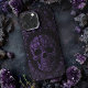 Lila Skull iPhone 13 Pro Max Fall. © Dunkles Herz Wünsche. Dieses gotische iPhone 13 Pro Max Gehäuse ist schwarz mit einem lila Blumenmotiv und einem Skull-Design.