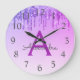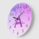 Lila Schein-Glitzer-Monogramm-Name u. Initiale Große Wanduhr