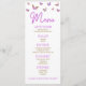 Dies ist ein lila Geburtstagsmenü zum Thema Schmetterlinge. Das Design besteht aus einem lila Schmetterlingsthema. Schmetterlingsmenü, Dekoration, Veranstaltungsmenü, Duschideen, Vorspeisenmenüs für Geburtstagsfeiern