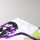 Originelles Design mit einer Vintagen Illustration mit lila Schmetterlingen auf einem Ast von Blätter und einem hellblauen blumengeschmückten Hintergrund.