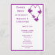 Hochzeitsmenü Schmetterlingschartendesign. Passen Sie dieses lila Hochzeitsmenü mit Ihren Hochzeitsdetails an. Wenn Sie Hilfe bei der Anpassung benötigen, kontaktieren Sie uns über den Link auf dieser Seite. Lila Schmetterling und Herzdesign personalisiertes Hochzeitsmenü