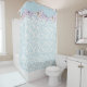 Ein hellblaues, gewelltes Muster mit schönen Aquarellfarben, lila und blauen Schmetterlingen entlang der oberen Grenze. Geben Sie Ihrem Bad ein elegantes Aussehen mit passenden Handtüchern und Accessoires.