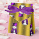 Eine niedliche und farbenfrohe Geschenktasche mit einem Muster von kleinen Schneemännern, die in lila Samthüten und -westen gekleidet sind, umgeben von goldenen Sternen, um Ihr Geschenk wirklich etwas Besonderes in dieser Ferienzeit zu machen.