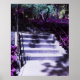 Eine Szene eines Weges in einem Park mit einem lila farbigen Schema.