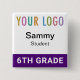 Unser quadratischer Namensbutton für Schüler ist leicht personalisierbar mit Ihrem Schullogo, Schülernamen oder anderem individuellen Text. Er wird mit einer Sicherheitsnadel befestigt. Dieses erschwingliche Namensschild ist ideal für Schüler (ab 10 Jahren*) auf Exkursionen, im Klassenzimmer und anderen Situationen, in denen eine schnelle Identifizierung der Schüler erforderlich ist. Entworfen in Lila und anderen Farben (alle Farben sind anpassbar). Unsere quadratischen Buttons sind 2 Zoll x 2 Zoll. Hergestellt in den USA. Keine Mindestbestellmenge und keine Einrichtungsgebühr.