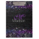 Lila Schwarz-Bürstenmetall-Glitzer-Monogramm Klemmbrett