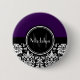 Lila Schwarz-weißer Damaselmonogramm Button