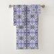 Lila Schwarz-weißes Curly Abstraktes Wiederholmust Badhandtuch Set