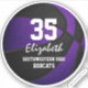 Dieser Basketballaufkleber zeigt das realistische Bild eines Basketballs, der abwechselnd lila und schwarz aufgefärbte Panels hat, auf denen man den Namen und die Trikotnummer des Athleten, den Namen des Schulleiters oder Clubs und den Maskottennamen - durch katz_d_zynes - personalisieren kann