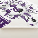 Die coole Sherpa-Fleecedecke mit ihrem Fußballthema "Explosion" lila, schwarz-weißer Fußballbälle in verschiedenen Größen und grauen und lila Sternen - der lila Stern hat ein winziges Muster weißer Polka-Punkte - passt sich dem Spielernamen und der Jersey-Nummer an - der lila Farbstreifen am unteren Rand ist anpassbar - katz_d_zynes