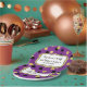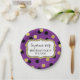 Kundengerechter Namensgeburtstags-Party-Teller in Lila mit Schwarzem und Goldconfettimuster, merkt bitte Gold ist nur photographischer Effekt.