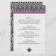 Sie können den Text auf dieser lila oder violetten, schwarzen und weißen Damast-Hochzeitskarte oder besondere Anlass-Menükarte anpassen. Um den Text zu ändern, verwenden Sie die Option Personalisieren. Für umfangreichere Änderungen am Menü, einschließlich Änderungen am Schriftart, der Größe des Schriftartes, der Farbe des Schriftartes oder der Textplatzierung, verwenden Sie die Option Anpassen. Eine wunderschöne Wahl für eine Hochzeit oder andere besondere Anlässe wie z.B. eine Pension, ein Jubiläum oder eine Geburtstagsparty.