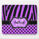 Lila, schwarze und weiße Zebrastreifen dieses Chic mit Polkapunkte mousepad hat die Schablonenkästen, damit Sie mit Ihrem eigenen Namen, Monogramm oder anderem Text besonders anfertigen.