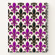 Ornamentaler Schmuck im 3D-Juwel-Ton, gerahmt, lila und schwarz, Fleur-de-lis, klassische Renaissance, französische Symbole, nahtloses Wiederholungsmuster-Design