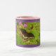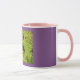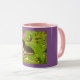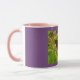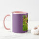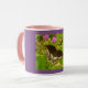 Lila Combo-Tasse mit schwarzem Monarch Fütternd auf Blume Nectar und Sommer Foliage Hintergrund.