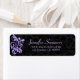 Lila Vintager Blumenwirbel auf schwarzem Vintagem Damast-Hintergrund. Anpassbarer Text in lila.