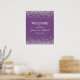 Elegant lila mit glitzerndem Silberhochzeitplakat mit Text: "Willkommen bei unserer Hochzeit." Personalisiert mit den Namen der Braut und des Bräutigams und ihrem Hochzeitstag.