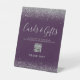 Lila Silberne Glitzer Hochzeitkarten geben QR-Code Sockelschild