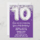 Lila und silberne 10. Geburtstagsfeier Einladung 10 Geburtstagsfeier mit Schwarz-weißem Silber mit modernem Drehbuch und lustigen Folienballons.