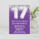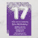 Lila und silberne 17. Geburtstagsfeier Einladung 17 Geburtstagsfeier für Junge oder Mädchen mit modernem Drehbuch und lustigen Ballons.