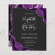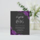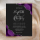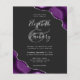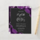 Ein lila Aquarelldesign bestickt mit Imitaten silberner Glitzer erscheint in zwei Ecken dieses eleganten Designs. Personalisieren Sie es mit den Namen des Paares in silbergrauem Schriftzeichen über einem großen grauen Ampersand. Fügen Sie die Hochzeitsdetails in Copperplate und kursiven Schriftart auf einem weißen Hintergrund. Auf der Rückseite ist ein lila und silberfarbenes Design erkennbar.