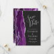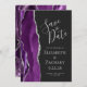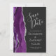 Der links Rand dieser eleganten modernen Hochzeit bewahrt die Dattelkarte mit einem lila Aquarellrahmen, der mit silberfarbenem Imitat-Glitzer bestickt ist. Der anpassbare Text kombiniert silbergraue Handschrift, Kupferplatte und kursiv Schriftart auf schwarzem Schieferboden. Auf der Rückseite erscheint ein passendes lila- und silberfarbenes Design.