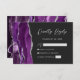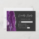 Der links Rand dieser eleganten, modernen Hochzeitsschutzkarte RSVP verfügt über einen lila Aquarellrahmen, der mit Imitaten silbernen Glitzer bestickt ist. Der Titel "Kindly Reply" erscheint im Skript, mit anpassbarem Text unten in silbergrauem Sans Serif-Schriftart auf einem schwarzen Slate Hintergrund. Auf der Rückseite ist ein lila und silberfarbenes Design erkennbar.