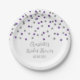 Maßgeschneiderte Brautparty Teller in lila und silbernen Konfetti-Muster.