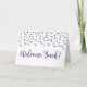 Herzlich willkommen auf der Rückenkarte mit Silber und Lila Konfetti-Muster. Perfekt, um Mitarbeiter wieder zur Arbeit zu empfangen.