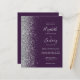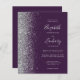 Die links Kulisse dieser eleganten, modernen Hochzeitseinladung besticht durch eine silberne Imitat-Glitzer-Grenze. Der individuell anpassbare Text verbindet handschriftlich, kopperplate und kursiv Schriftart in einem dunkelgrauen lila Hintergrund. Fügen Sie zusätzliche Details auf der Rückseite, zusammen mit einem QR-Code, um Ihren Gästen zu helfen, besuchen Sie Ihre Hochzeitswebsite.