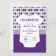 Überwogenes elegantes Raute-Muster in Schulfarben von lila und silbergrauem Set die Kulisse für diese niedliche Baby-Foto-Ankündigung. Ein weißer Babyanzug enthält den gesamten Text, um Details über Ihr neues Baby zu geben. Auf der Rückseite befindet sich ein Foto. Das Design besteht aus Mond und Grau, verbrannten Orange und Grau, Rot und Schwarz, Grün und Schwarz, Orange und Marine, Grün und Gelb, lila und grau. Matching-Produkte verfügbar.