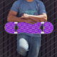 Lila Skateboardgrafik von Roseanne Jones.
