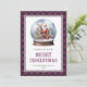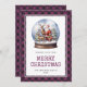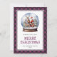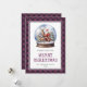 Maßgeschneiderte lila Büffel karierte Weihnachtskarte mit einer Schneekugel mit Weihnachtsmann und Rentier. Diese lila Weihnachtskarte in Aquarellfarbe mit Ihrem Familiennamen und dem Jahr leicht personalisieren.