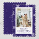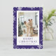 Niedliche lila Frohe Weihnachtskarte mit Schneeflocken. Personalisieren Sie diese Urlaubskarte einfach mit Ihrem Foto und Text.