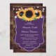 Lila Sonnenblumenhochzeit aus rustikalem Holz Einladung