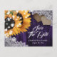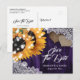 Diese rustikale Holz-, Burlap- und Spitzen-Sonnenblumen-Hochzeit speichern das Datum Postkarten sind ideal für Ihre lila rustikale Hochzeitsfeier inspiriert von Sonnenblumen Blume. Matching-Elemente verfügbar.