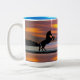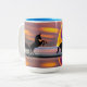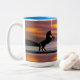 Lila Sonnenuntergang, Einhörner, Vollmond am Stran Zweifarbige Tasse