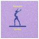 Wunderschöner lila Funkelhintergrund mit einer blau funkelnden Gymnast-Silhouette auf Balancestrahl, sagt Gymnastik in gelbem Schriftart über dem Design und unten können Sie personalisieren mit dem Namen Ihrer Wahl oder Sie können wählen, die Personalisierungsbox leer verlassen, wenn Sie keinen Namen gewollt.