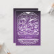 Gotische Leckerbissen-Halloween-Party-Einladung mit Fledermäusen, Katzen & Schädeln Set auf lila Hintergrund mit weißer Typografie. Zeitgenössische und stilvolle halloween Einladung für ein Halloween-Party oder ein Kind!
