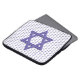 Ein schlichtes und elegantes Design mit einem lila Star of David. Es gibt einen nahtlosen wiederholten Muster Hintergrund von kleinen Sternen und eine große Overlain Magen David. Beide können leicht gelöscht werden, indem Sie die Funktion anpassen oder personalisieren auf Zazzle verwenden. Sie können auch jede Hintergrundfarbe hinzufügen, die Ihnen gefällt.