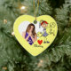 Eine rote vorangegangene Strichmännchencheerleader in einer lila Uniform und gelbe pom poms auf einer Verzierung, die Sie mit Ihrem Foto und Text besonders anfertigen können. Vor zur Einrichtung, addieren Sie Ihren Schul- oder Teamnamen, Ihren Namen, Schuljahrdatum, eine Phrase, oder was auch immer Sie wollen! Macht ein großes Geschenk für die Cheerleader jedes möglichen Alters!